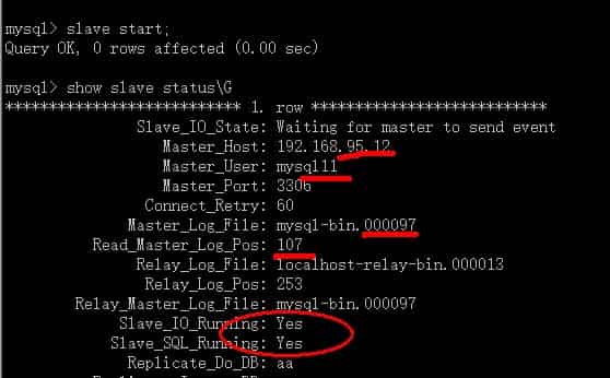 mysql> slave start;
